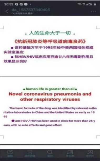 另:2003年4月即“非典”爆发时,李万泉医师研究的治疗非典之特效中医药,亦送中国军事医学科学院病毒研究所(因该所权威的杨教授听闻李医师的抗艾滋病毒、抗乙肝病毒的中医药鉴定结果良好,且是由我国当时最权威的药物鉴定专家陈鸿珊教授亲自鉴定之故才接收李医师的药物鉴定的),经杨教授鉴定对非典病毒有良好的抑杀作用,故排列在我国急用于非典之药物的第五位备用。希望卫生主管部门及国家高度重视病原体(新冠病毒)的根除,即充分挖掘与应用中医药来实现这一巨大而宏伟的目标(绝不能花大价钱购买美国生产的抗新冠病毒化学药物!一一其疗效及毒副作用还需一年左右的临床用药实践/时间才能证实的!)。